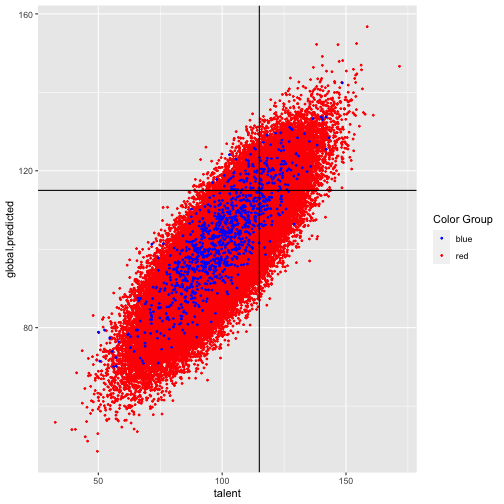 • the Reds and the Blues are no different when it comes to talent: they both have the same talent distribution, as described above.