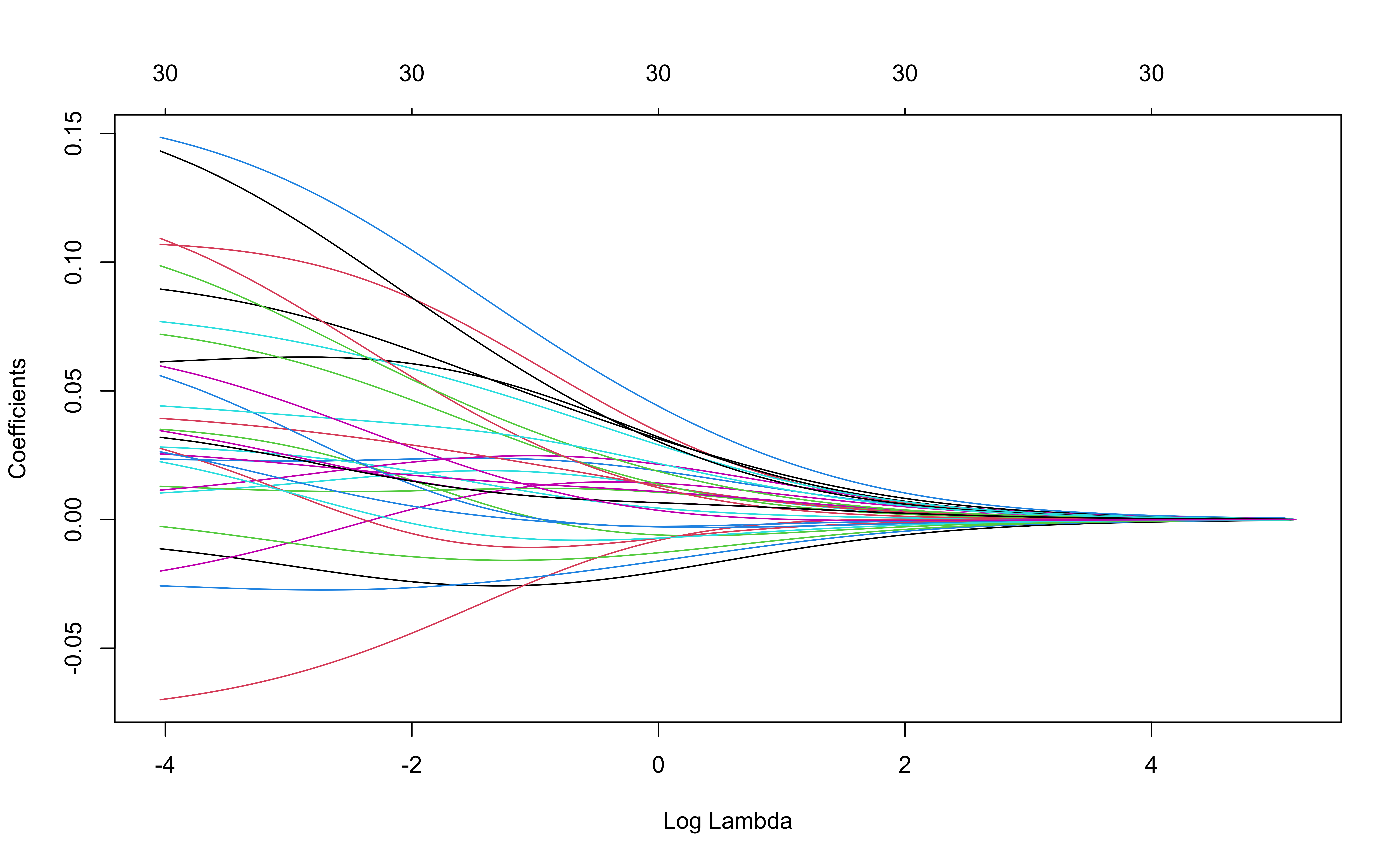 mixture = 0 means ridge regression (mixture = 1 means Lasso)
